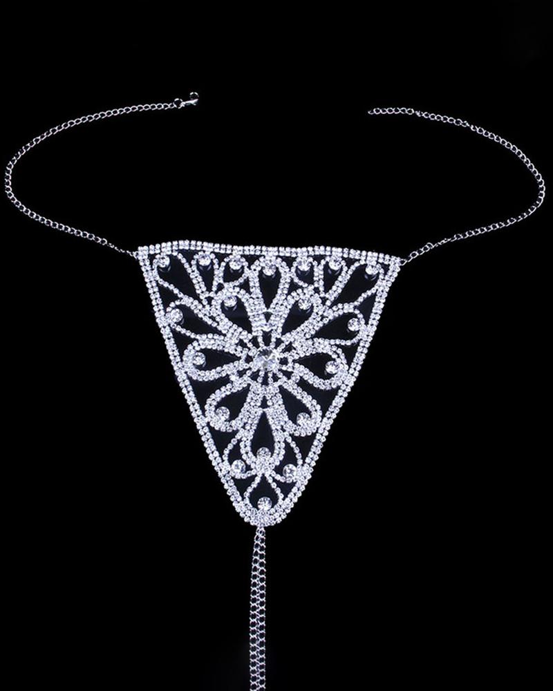 Style:Glamorous Type:Bodychain,Panties Material:Rhinestone Decoration:Rhinestone Occasion:Home Package Include:1*Panty(Without Bra)