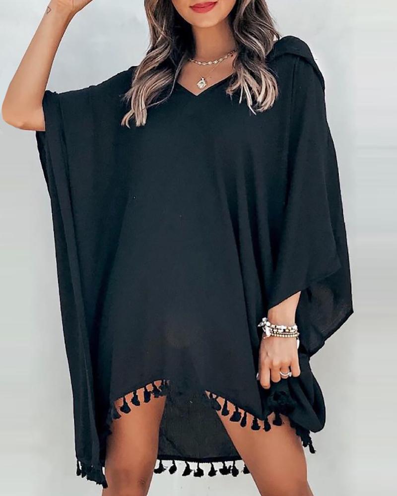 Style:Casual Type:Tee Material:100%Polyester Neckline:V-Neck Sleeve Style:Long Sleeve Length:Regular Pattern Type:Plain Decoration:Tassel Fit Type:Regular Occasion:Daily Package Include:1*T-Shirt