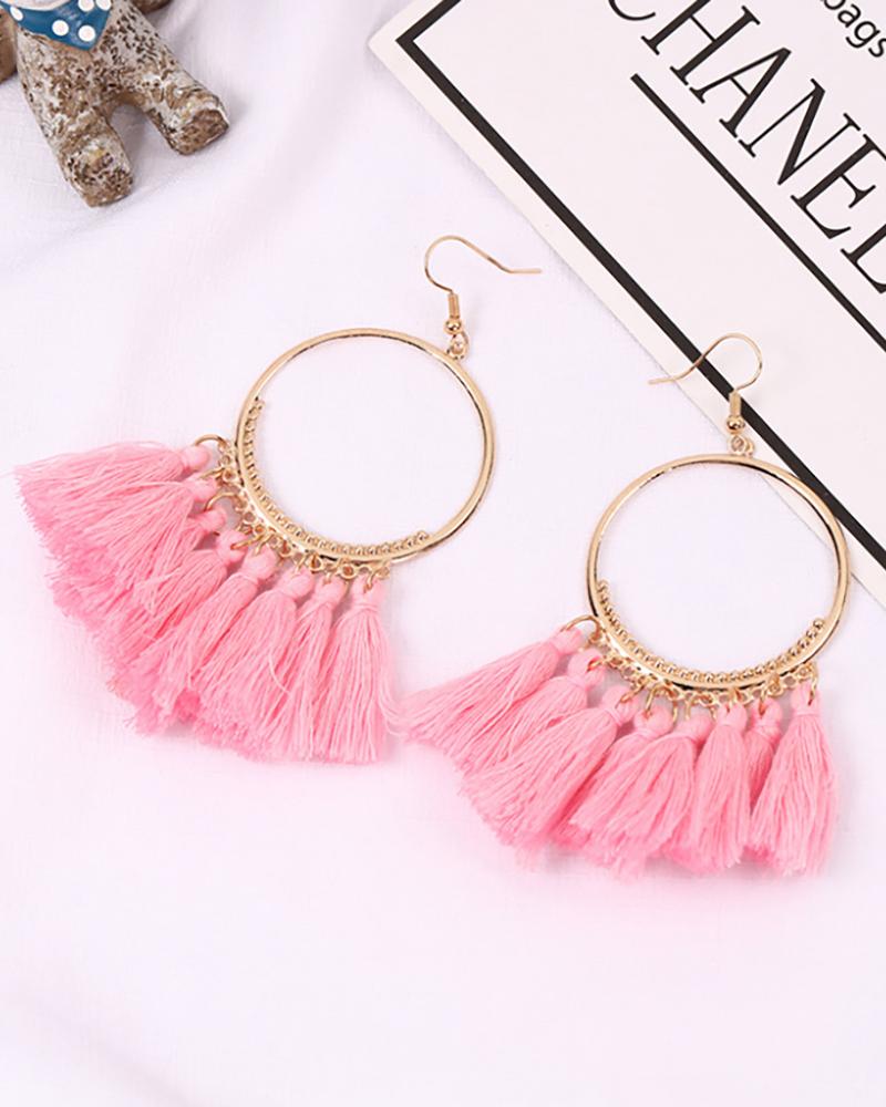 Style:Boho Pattern Type:Plain Decoration:Tassel Occasion:Daily Package Include:1Pair Earrings