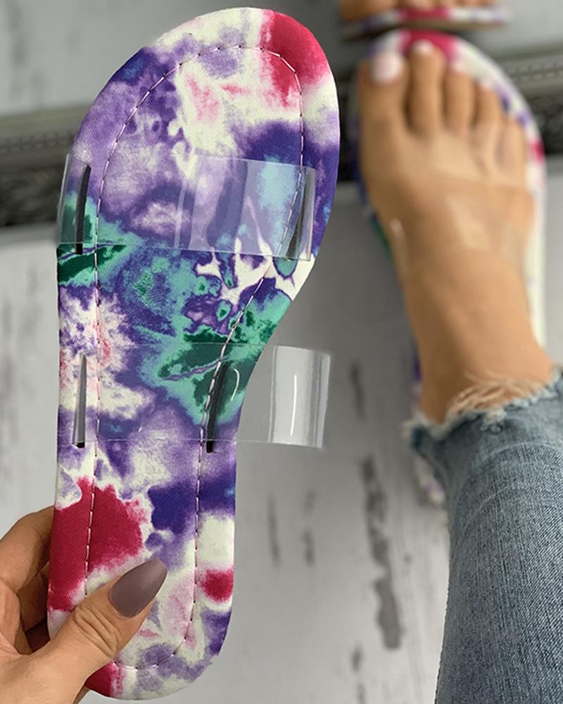 Tie Dye Print Clear Perspex Open Toe Slippers