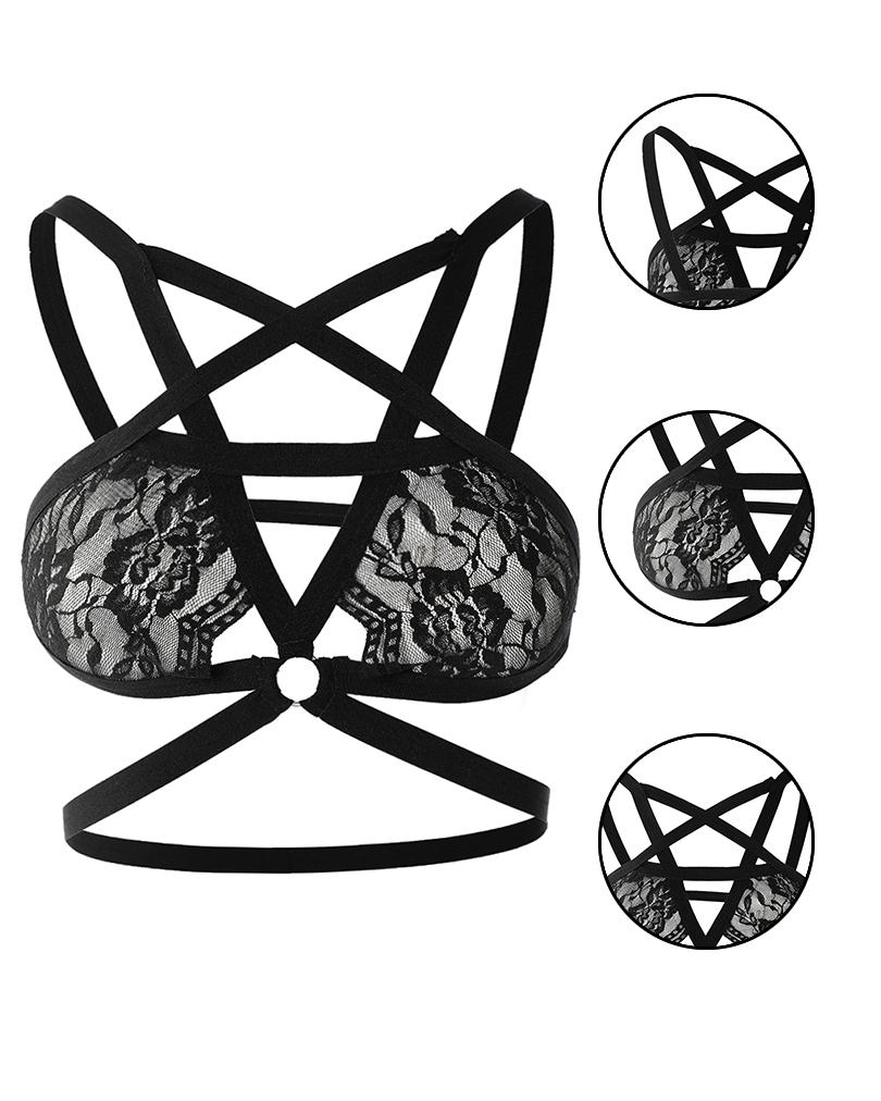 Style:Sexy Type:Bralette Material:Lace,Polyester Neckline:Asymmetrical Neck Sleeve Style:Sleeveless Length:Crop Pattern Type:Floral Decoration:Cutout,Lace Fit Type:Skinny With Belt:No Occasion:Daily Package Include:1*Bralette
