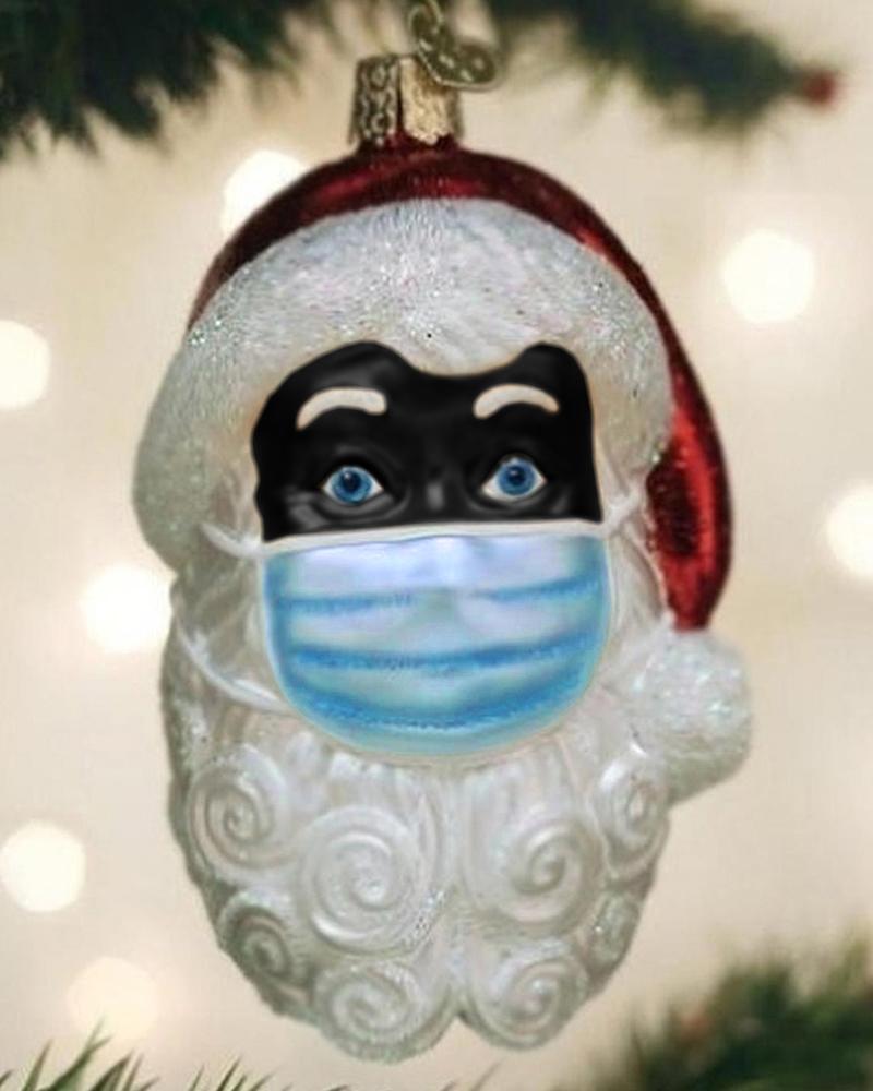 SANTA WITH FACE MASK ORNAMENT: Traditionally designed Christmas Decorations made from molten glass blown into finely carved molds