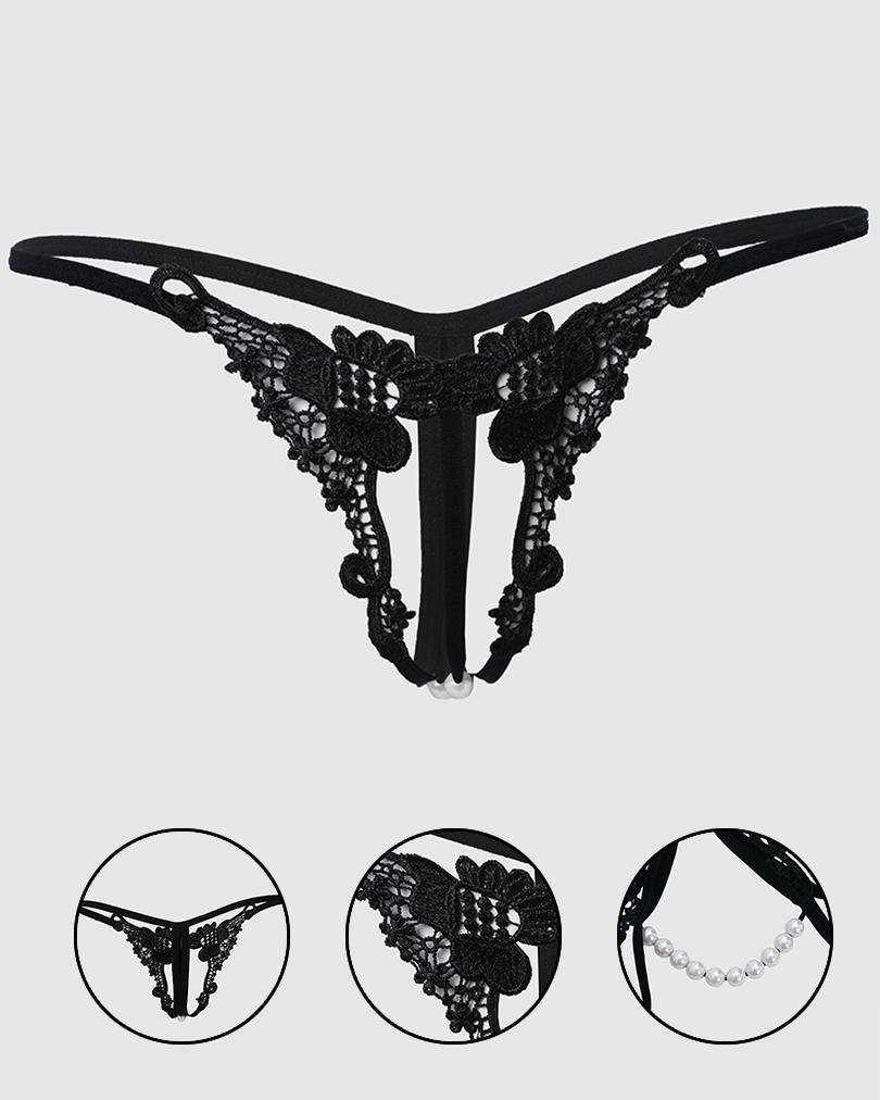 Style:Sexy Type:Thong Material:Lace Pattern Type:Plain Decoration:Beaded Occasion:Home Package Include:1*Thong
