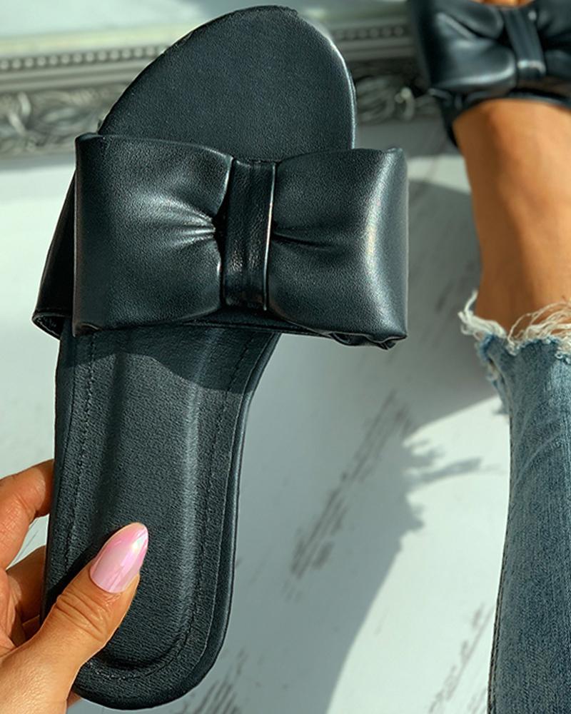 Style:Chic Material:PU Pattern Type:Plain Decoration:Bowknot,Peep Toe Occasion:Daily Package Include:1*Sandals