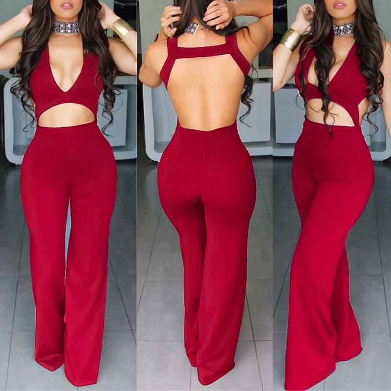 Color:Black,Blue,Wine Red Pattern:Solid Neckline:Deep V Neck Material:Polyester Blend Style:Fashion SleeveLength:Sleeveless P.S ALL THE SIZE ARE FOLLOWED BY ASIAN STANDARD Package Include:1*Woman Jumpsuit Note:There might be 2-3% difference according to manual measurement. Please check the measurement chart carefully before you buy the item. Please note that slight color difference should be acceptable due to the light and screen.