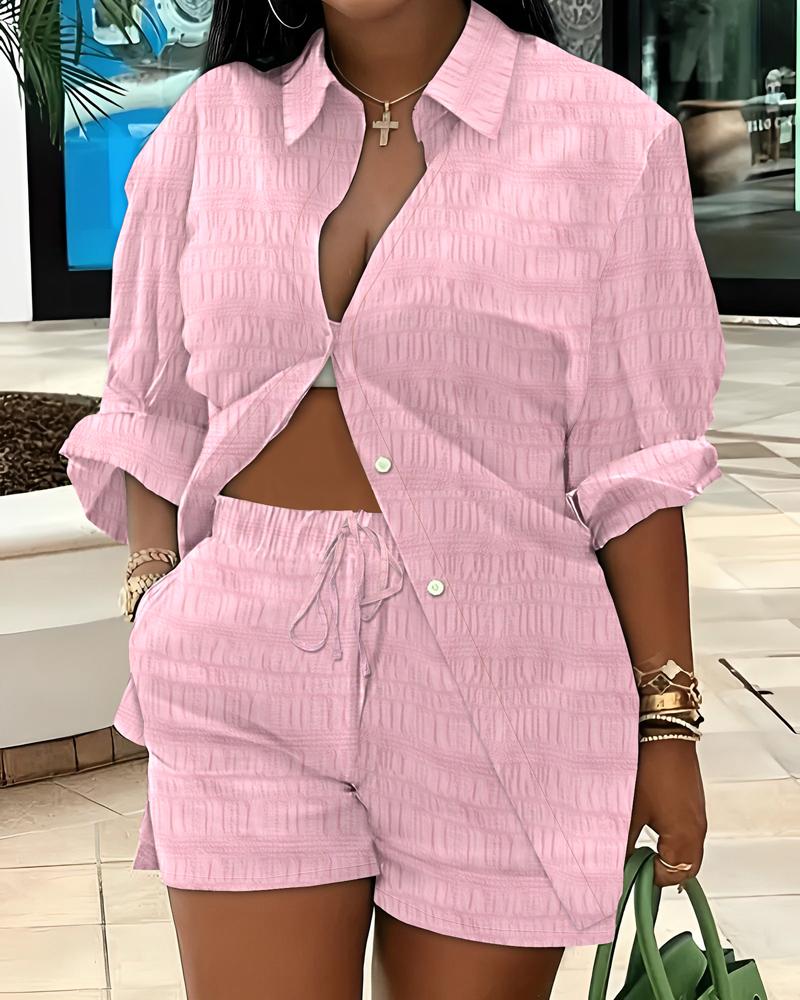 Textured Shirt & Drawstring Shorts Set