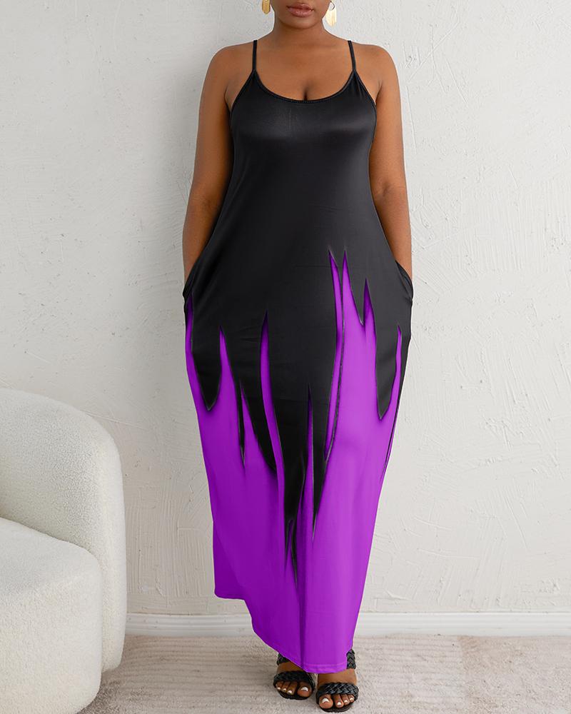 Style:Chic Type:Straight Material:Polyester Neckline:V-Neck Sleeve Style:Spaghetti Strap Length:Maxi Pattern Type:Abstract,Colorblock Decoration:Pocket Fit Type:Regular Occasion:Daily,Vacation Package Include:1* Dress Fabric Elasticity:Slight Stretch Sheer:No Care Instructions:Machine wash or professional dry clean