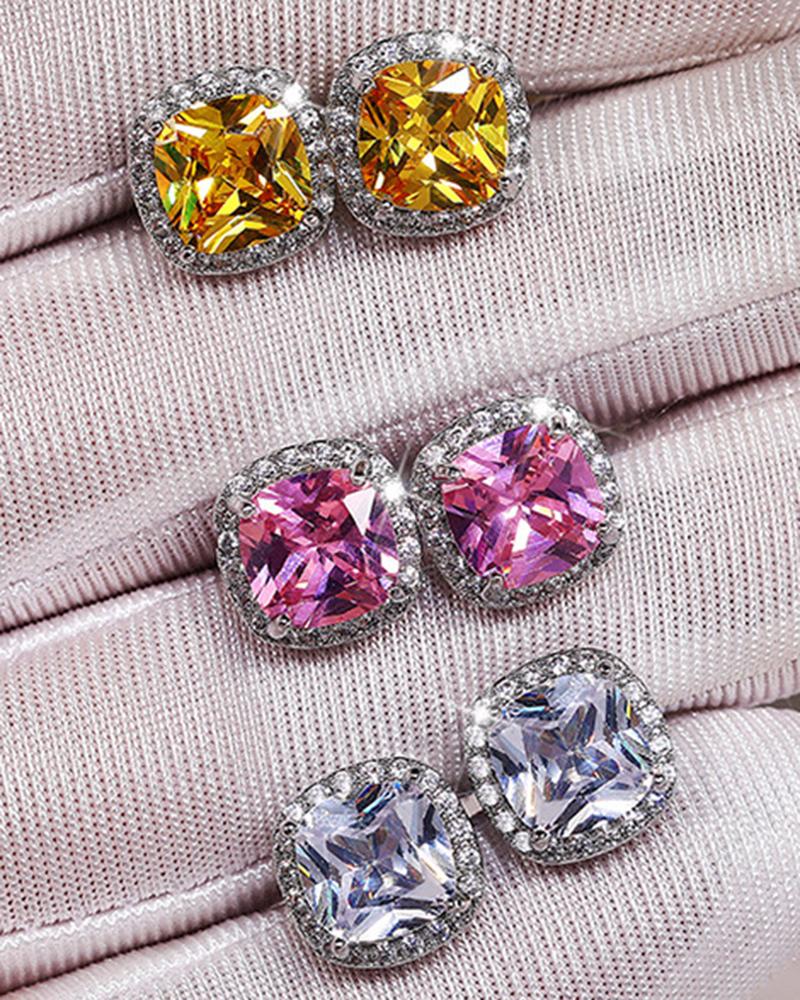 1Pair Square Rhinestone Stu Earrings