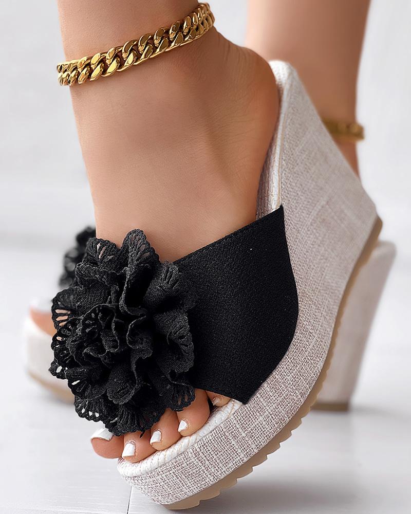 Style:Chic Type:Wedge Shoes Pattern Type:Floral Occasion:Daily Toe:Peep Toe Heel Height:High Heel Package Include:1*Wedge Sandals