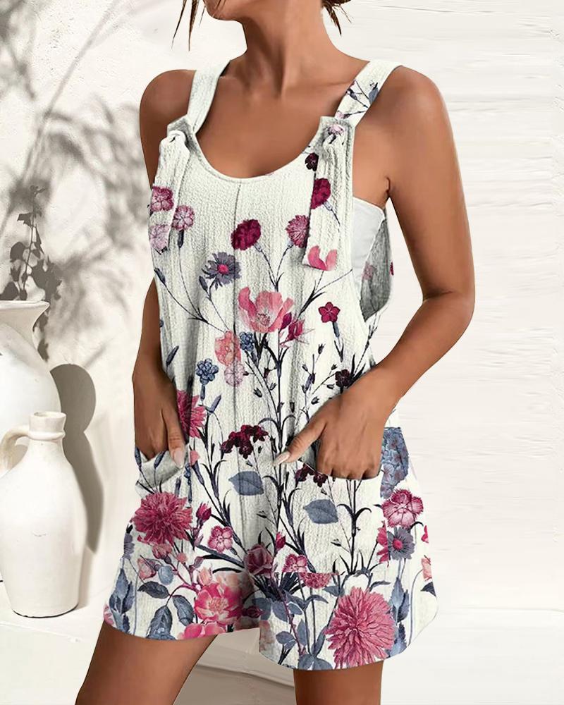 Pocket Design Drawstring Frill Hem Sleeveless Romper