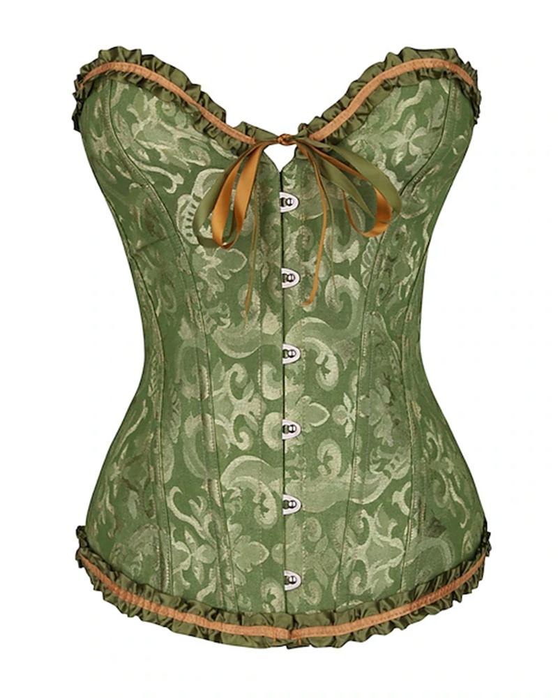 Style:Chic,Vintage Type:Shapewear Material:Polyamide Neckline:Bandeau Sleeve Style:Sleeveless Length:Regular Pattern Type:Baroque Decoration:Buckle Fit Type:Skinny Occasion:Daily Package Include:1*Corset Top Sheer:No Care Instructions:Hand wash, do not dry clean