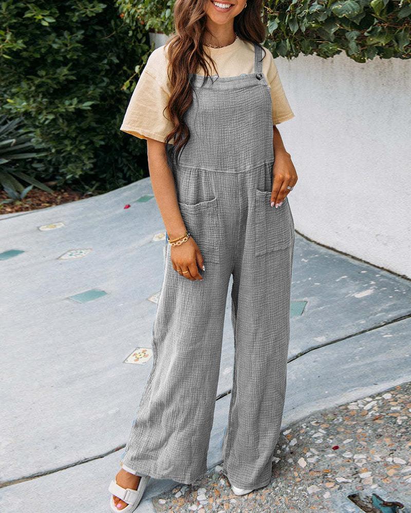 Wide Leg Pocket Design Suspender Jumpsuit