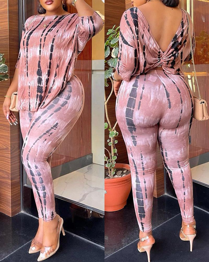 Tie Dye Print Twisted Backless Top & Pants Set