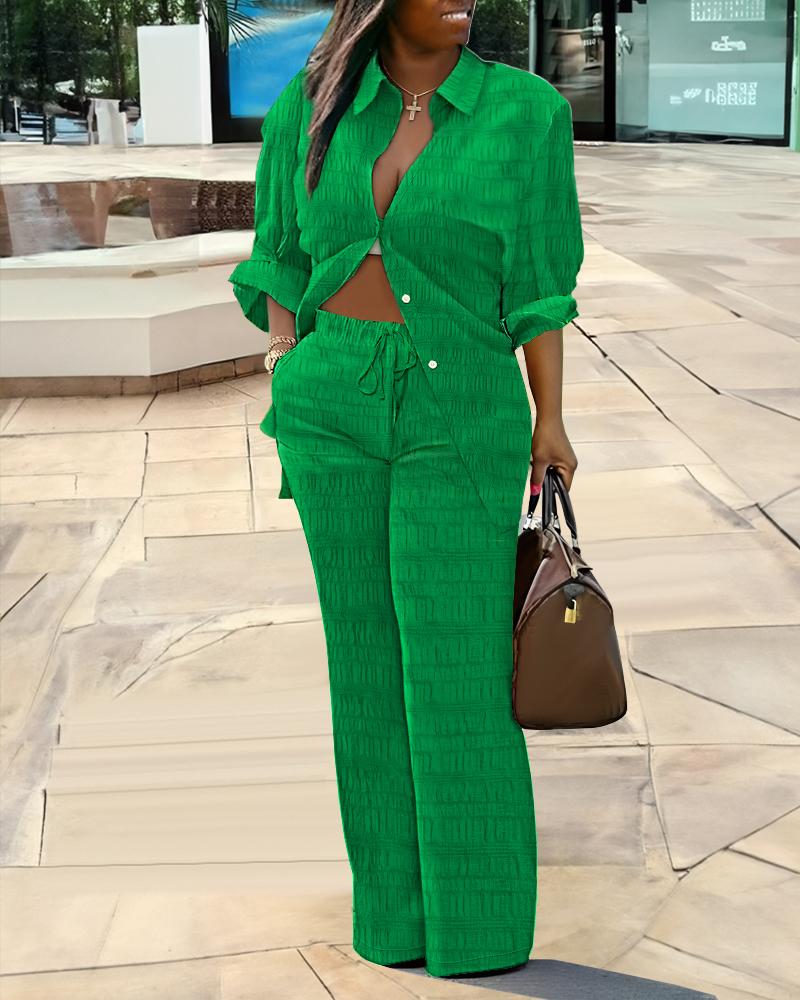 Style:Casual Type:Pants Sets Material:100%Polyester Neckline:Turn-down Collar Sleeve Style:Long Sleeve Length:Long Pattern Type:Plain Decoration:Button Fit Type:Regular Occasion:Daily Package Include:1*Pants Set Fabric Elasticity:Medium Stretch Sheer:No Care Instructions:Machine wash or professional dry clean