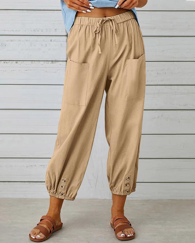Buttoned Pocket Design Drawstring Cuffed Pants