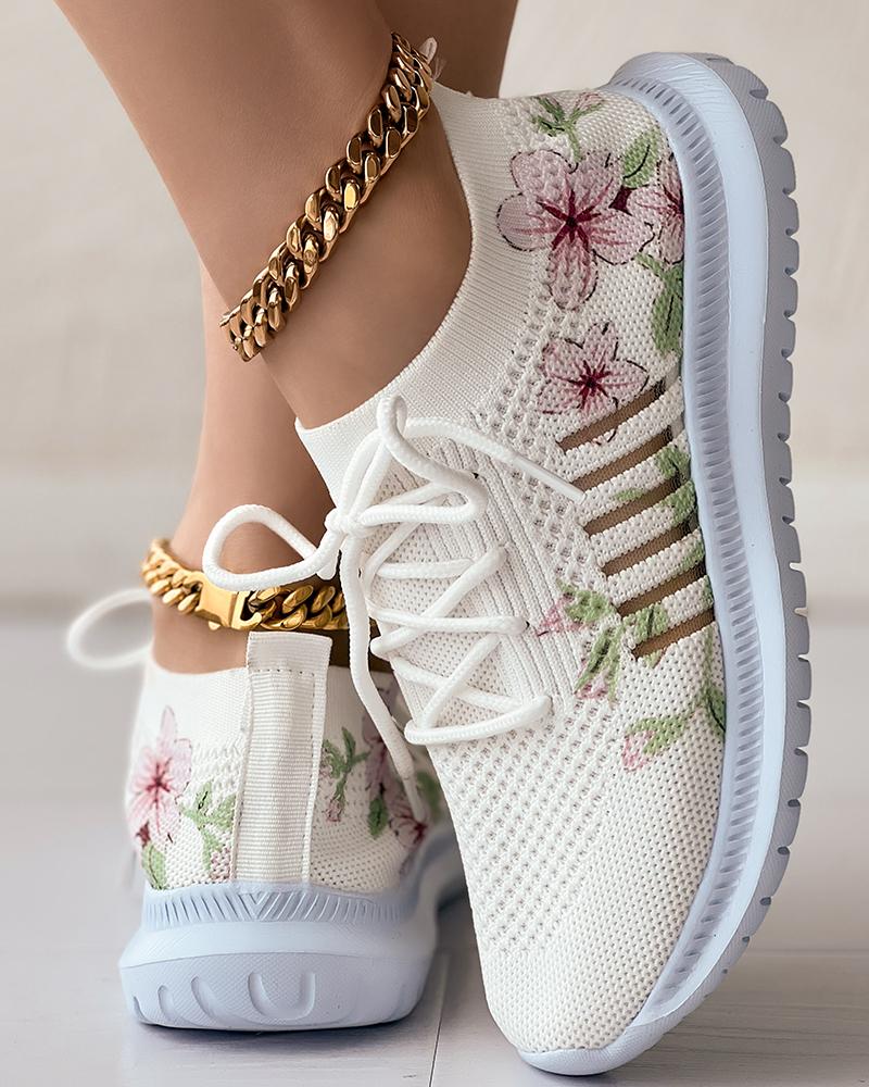 Floral Print Lace-up Slip-On Breathable Sneakers