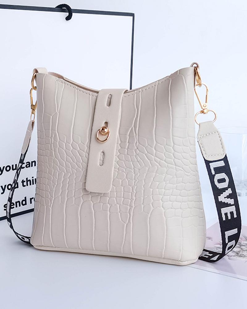Crocodile Letter Tape Strap Crossbody Shoulder Bag