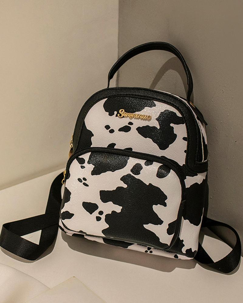 Snakeskin Cow Print Zipper Design Backpack Trendy School Bag
