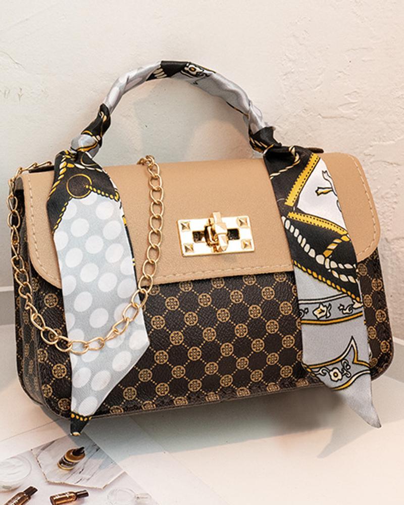 Graphic Print Scarf Decor Handbag