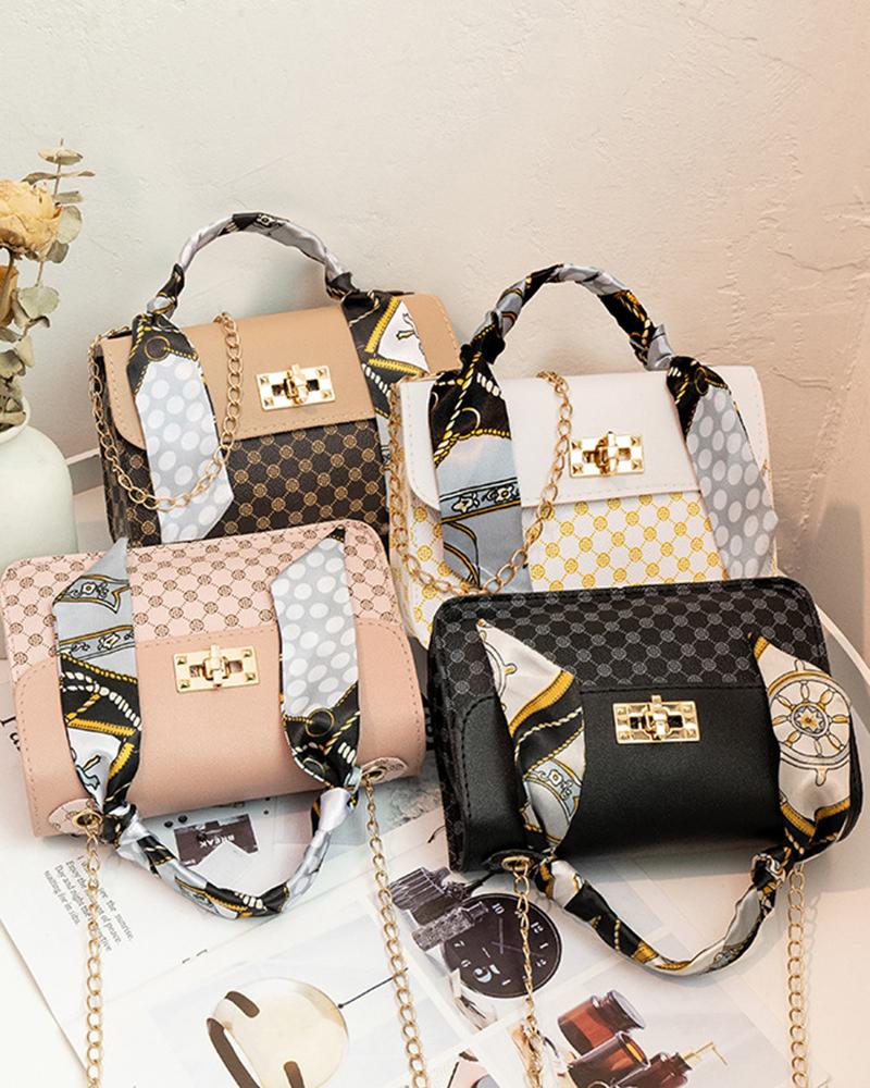Graphic Print Scarf Decor Handbag