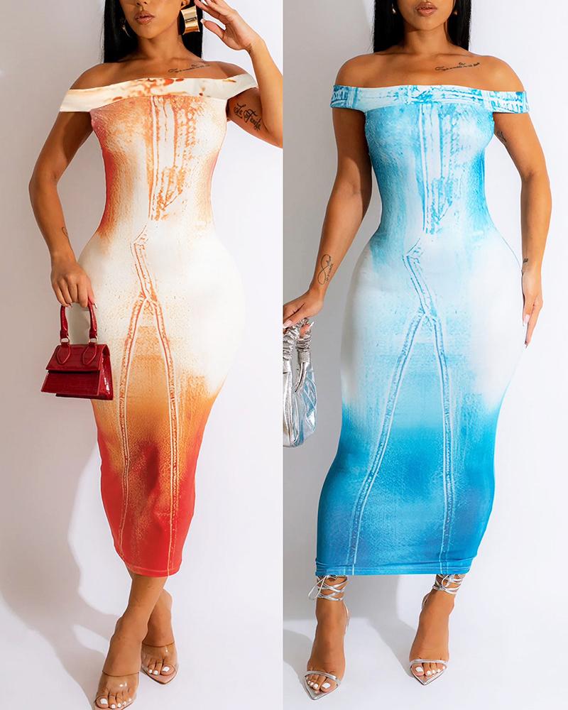 Style:Chic Type:Bodycon Material:97%Polyester,3%Spandex Neckline:Off the Shoulder Sleeve Style:Short Sleeve Length:Maxi Pattern Type:All Over Print Decoration:Others Fit Type:Skinny Occasion:Daily Package Include:1* Dress Fabric Elasticity:Slight Stretch Sheer:No Care Instructions:Machine wash or professional dry clean