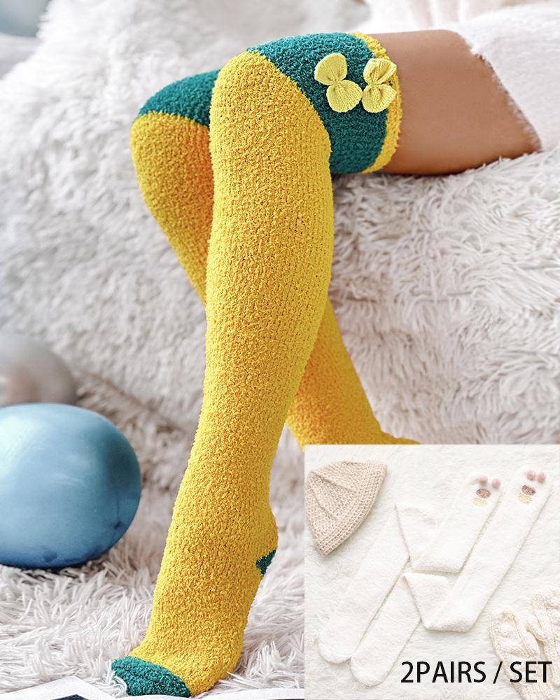 2Pairs Christmas Cartoon Over The Knee Fuzzy Thermal Socks Set