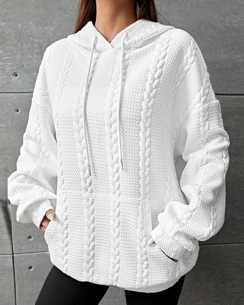 Pocket Design Drawstring Wheat Textured Hoodie