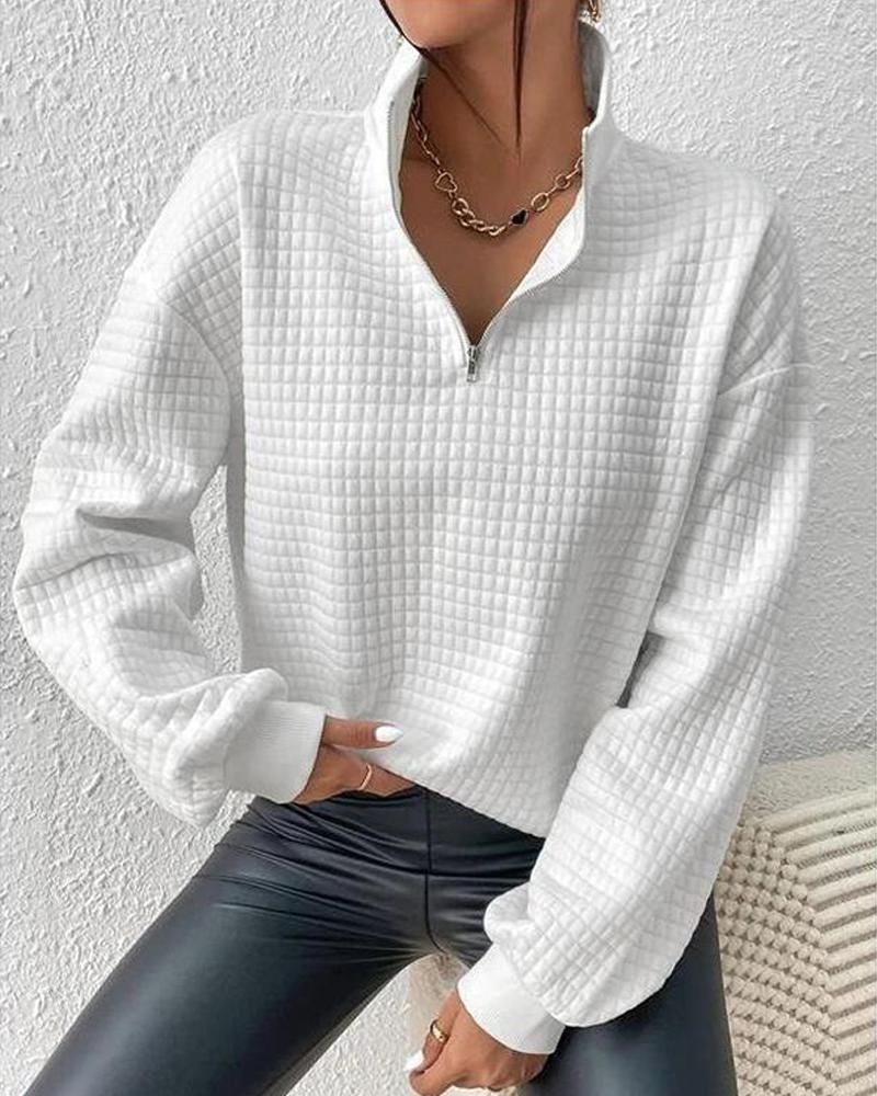 Style:Chic Type:Sweatshirt Material:Waffle Knit Neckline:Turn-down Collar Sleeve Style:Long Sleeve Length:Regular Pattern Type:Plain Decoration:Zipper Fit Type:Regular Occasion:Daily Package Include:1*Sweatshirt Fabric Elasticity:Slight Stretch Sheer:No Care Instructions:Machine wash or professional dry clean