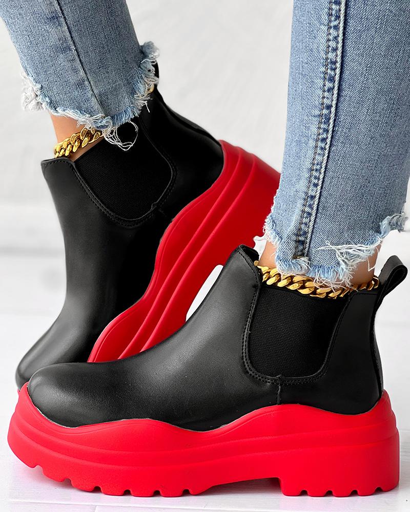 Colorblock PU Leather Platform Ankle Boots