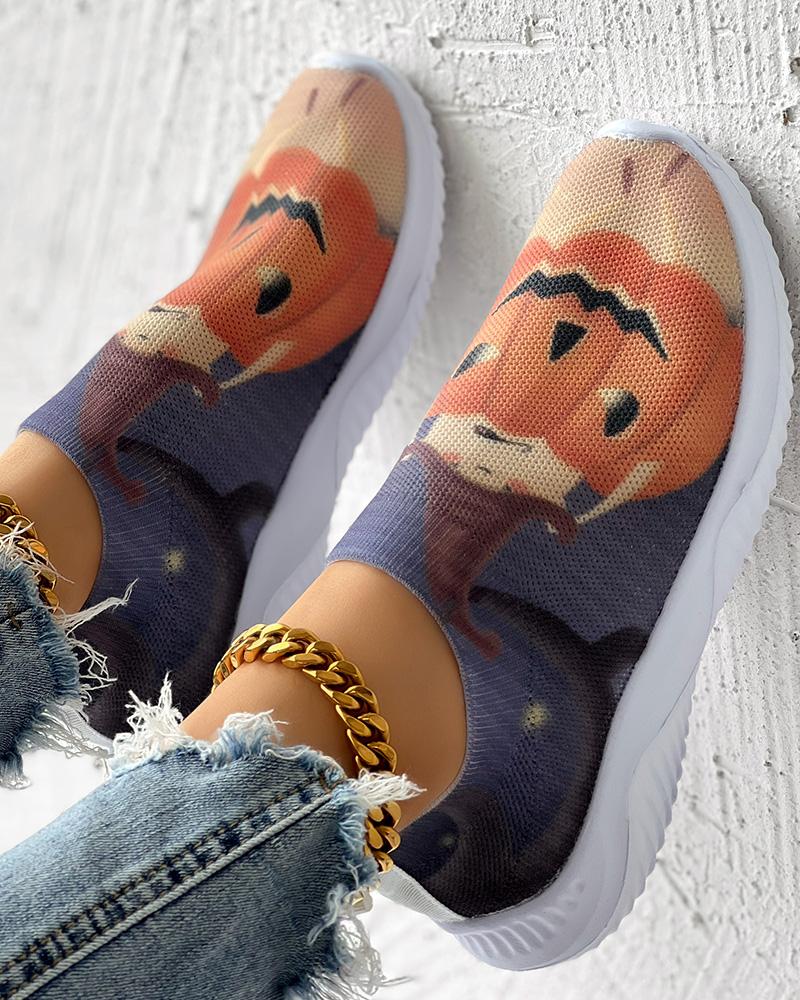Halloween Pumpkin Graphic Print Breathable Slip-On Sneakers