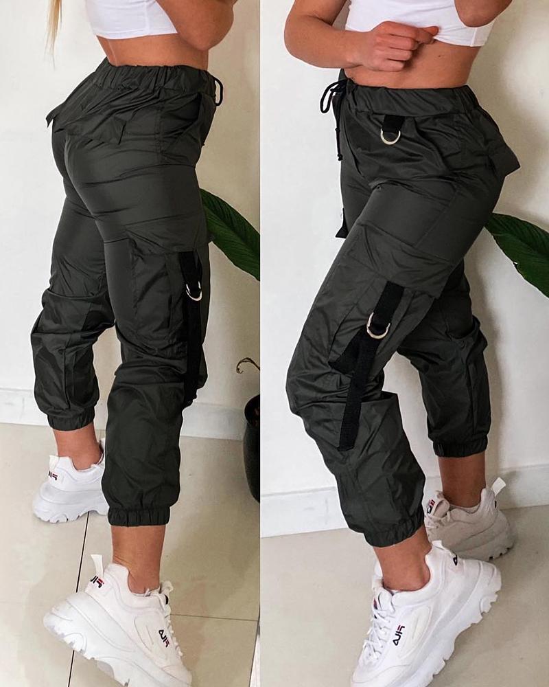 Tape Patch Pocket Design Cuffed Pants