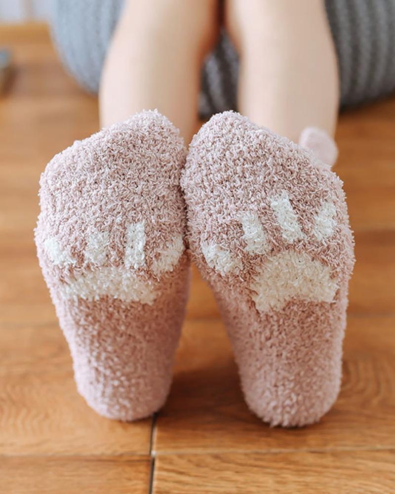 1Pair Bear Ears Heart Pattern Fuzzy Thermal Socks