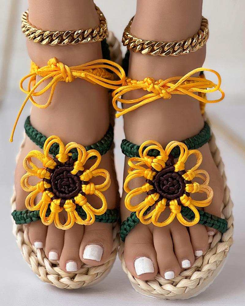 Sunflower Pattern Braided Beach Sandals