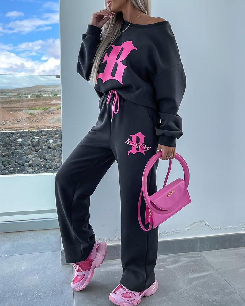 Style:Casual Type:Sweatpants Sets,Sweatshirt Sets Material:95%Polyester,5%Elastane Neckline:Round Neck Sleeve Style:Long Sleeve Length:Long Pattern Type:Letter Decoration:Drawstring Fit Type:Regular Occasion:Daily Package Include:1*Pants Set Fabric Elasticity:High Stretch Sheer:No Care Instructions:Machine wash or professional dry clean