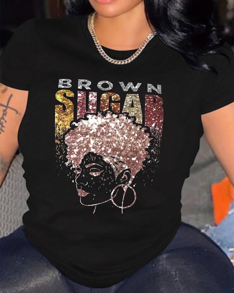Brown Sugar Afro Queen Print Casual T-shirt