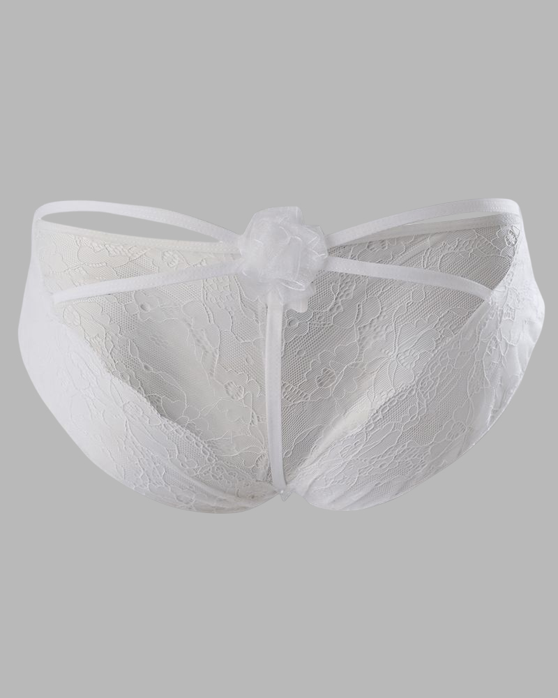 Style:Romantic,Sexy Type:Panties Material:Lace Pattern Type:Plain Decoration:Cutout,Lace,Tied Detail Occasion:Home Package Include:1*Panty