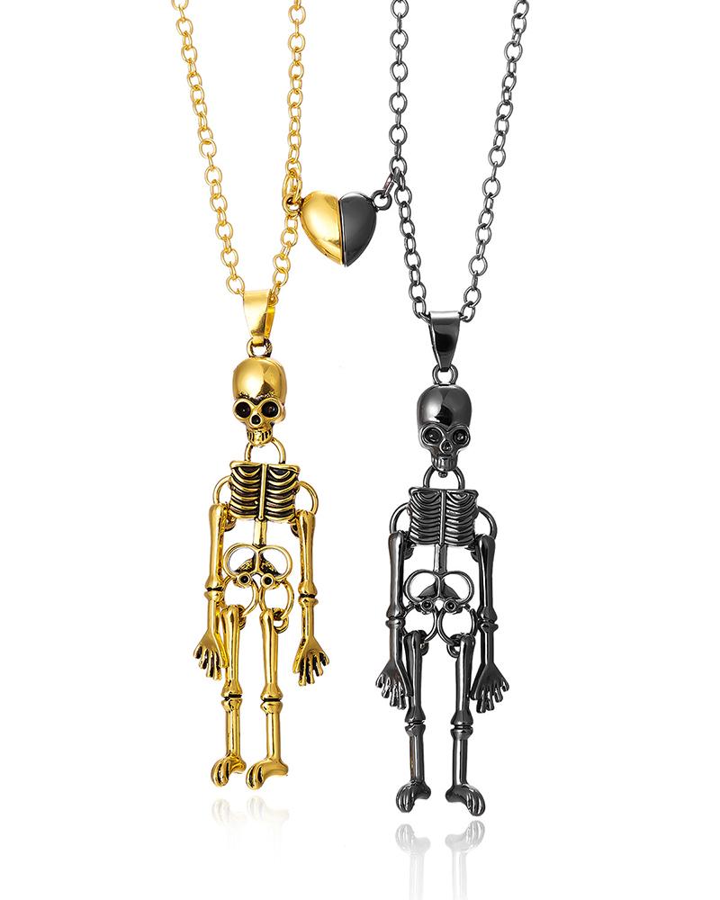 2pcs Halloween Skeleton Matching Heart Couple Necklaces Set