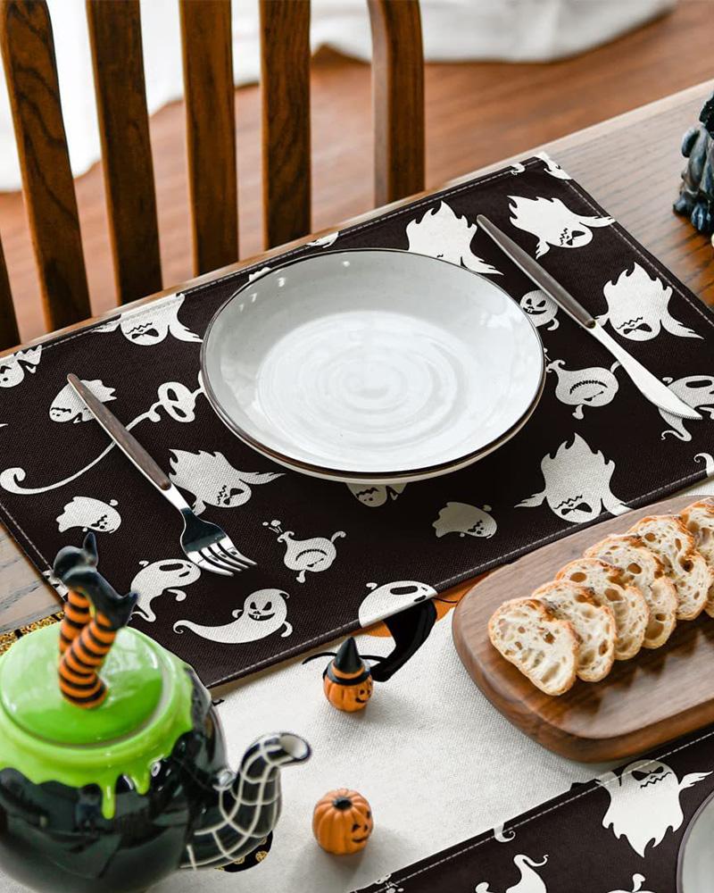 4PCS/Set Halloween Placemats Ghost Pumpkin Silhouette Tree Crows Graphic Print Dining Decorations Party Supplies