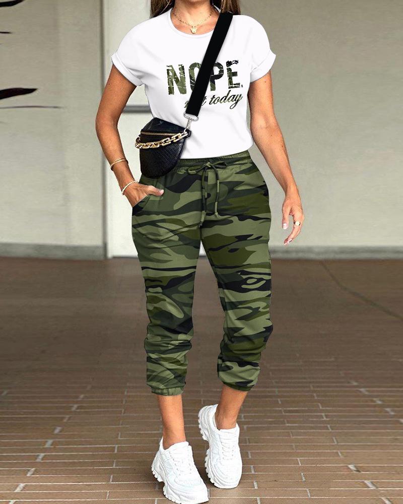 Nope Not Today Camouflage Print Top & Drawstring Cuffed Pants Set