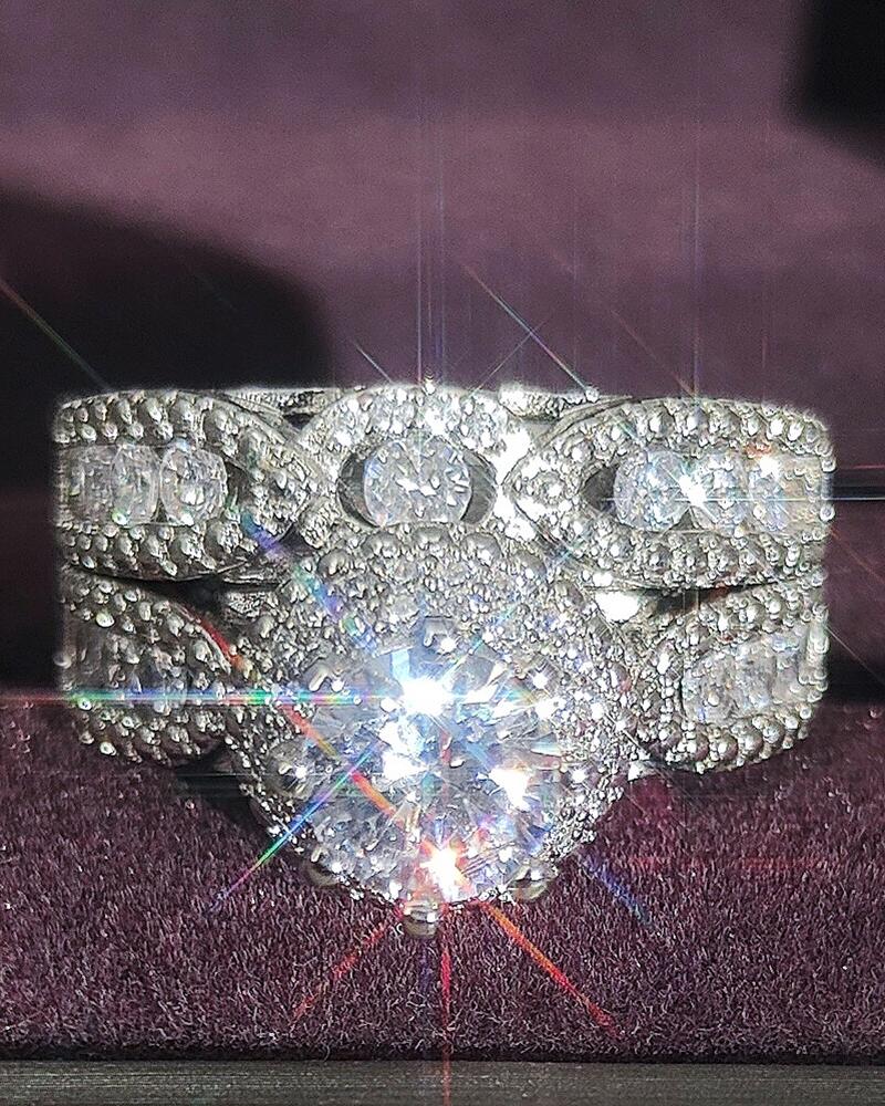2pcs Fashionable Micro Pave Zircon Engagement Rings Set