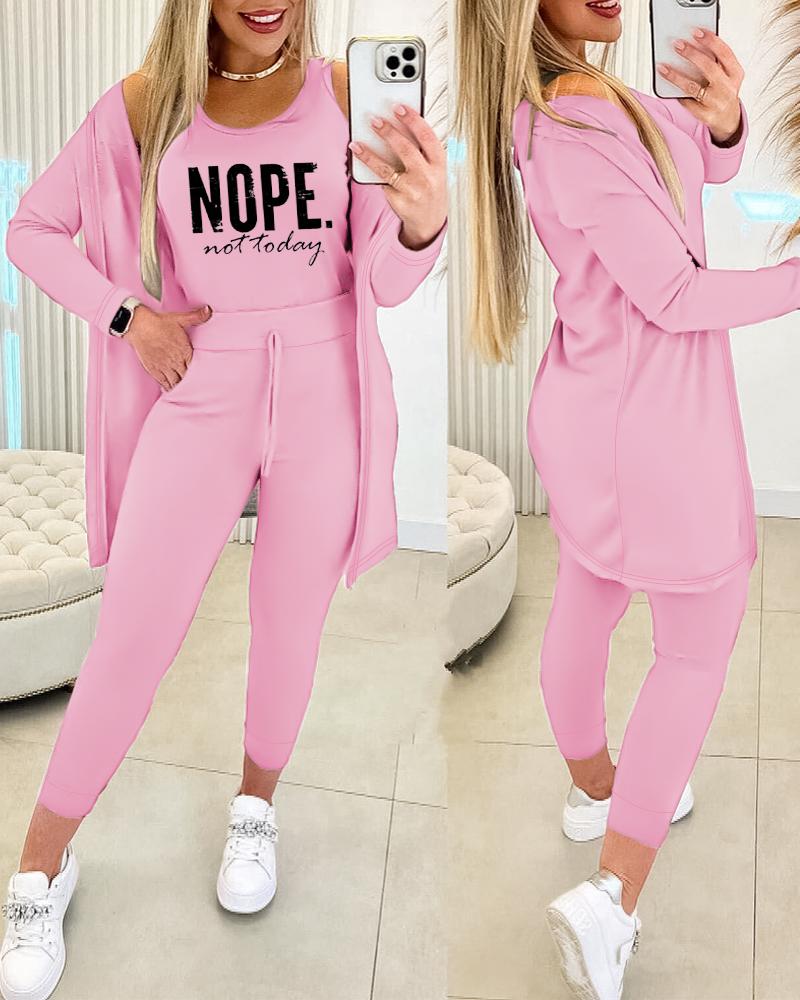 Nope Not Today Print Tank Top & Drawstring Pants Set With Coat