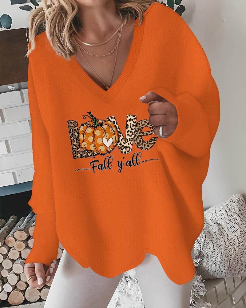 Halloween Leopard Polka Dot Pumpkin Love Letter Print V-Neck Top
