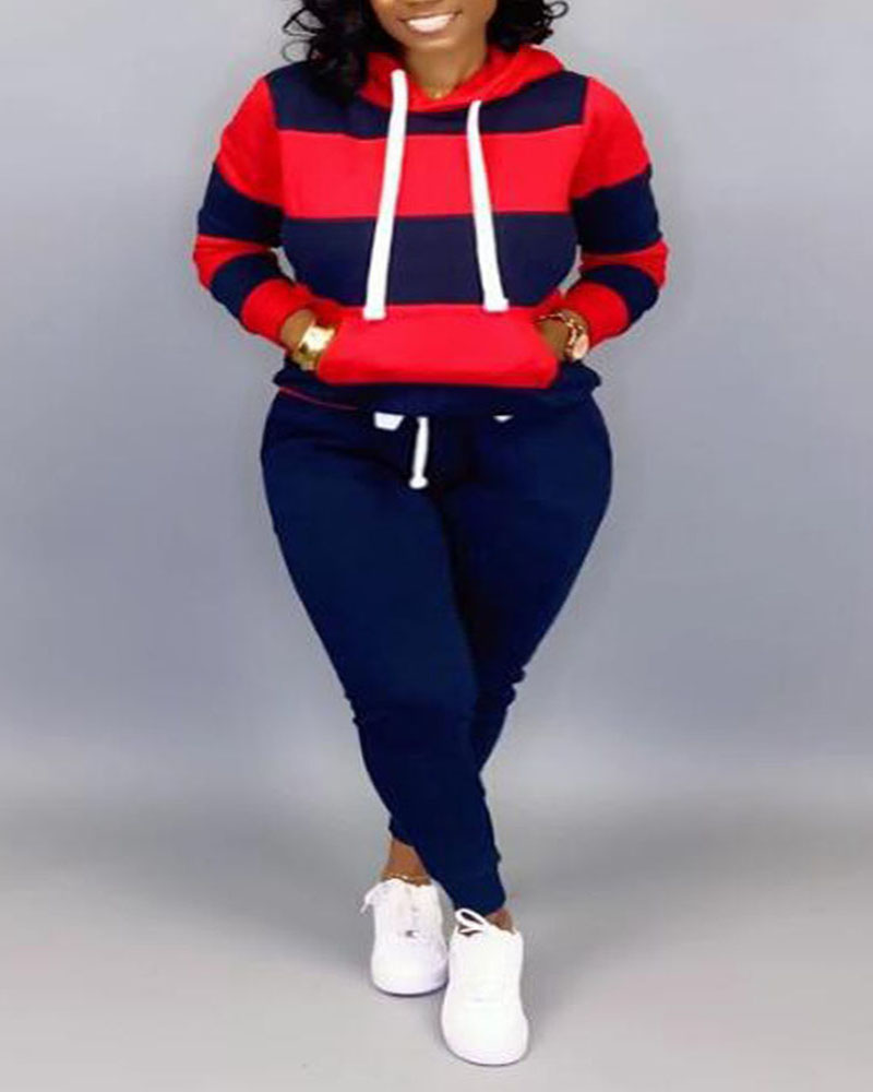 Style:Casual,Sporty Type:Sweatpants Sets,Sweatshirt Sets Material:Polyester Neckline:Hooded Sleeve Style:Long Sleeve Length:Long Pattern Type:Colorblock Decoration:Drawstring,Pocket Fit Type:Regular Occasion:Daily Package Include:1*Pants Set