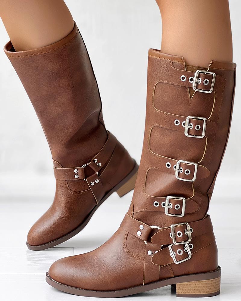 Style:Casual Type:Boots Material:PU Pattern Type:Plain Decoration:Buckle Occasion:Daily Toe:Round Toe Heel Height:Low Heel Package Include:1*Boots
