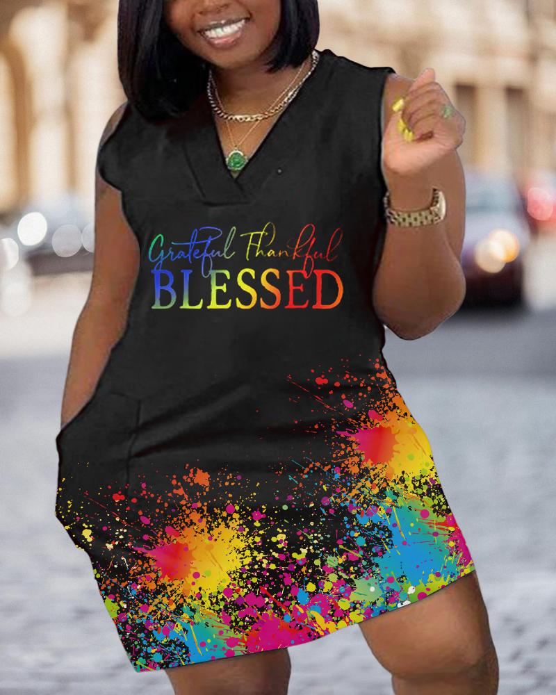 Style:Casual,Chic Type:Straight Material:97%Polyester,3%Spandex Neckline:V-Neck Sleeve Style:Sleeveless Length:Mini Pattern Type:Ink Splash,Letter Decoration:Pocket Fit Type:Regular Occasion:Daily Package Include:1* Dress Fabric Elasticity:Non-Stretch Sheer:No Care Instructions:Machine wash or professional dry clean Waist Line:Natural