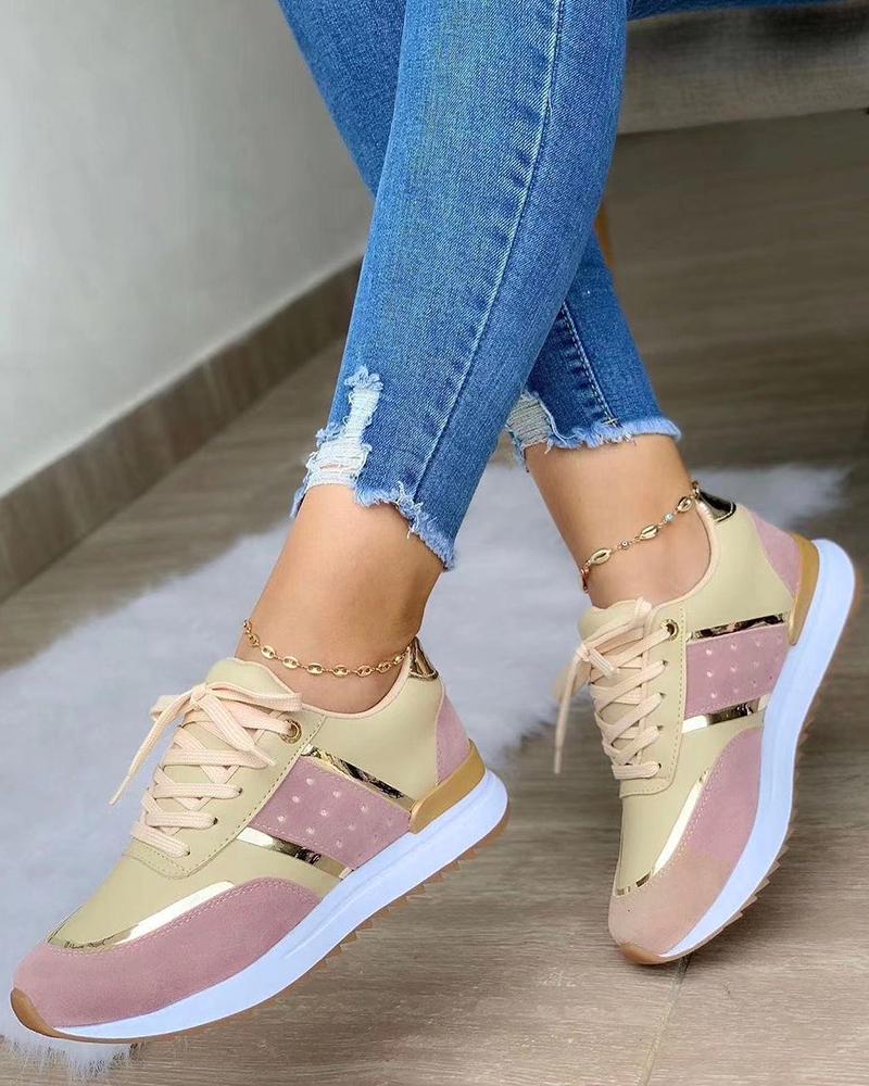 Style:Chic,Casual Type:Sneakers Pattern Type:Contrast Paneled Decoration:Lace-up Occasion:Daily Toe:Round Toe Heel Height:Flat Package Include:1*Sneakers