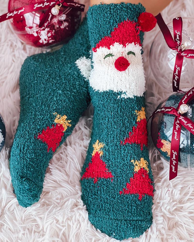 1Pair Christmas Snowflake Elk Snowman Pattern Fuzzy Thermal Socks