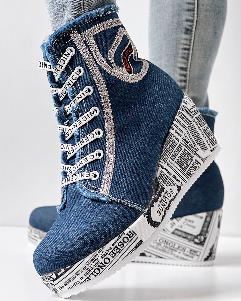 Newpaper Lace-up Platform Wedge Ankle Boots