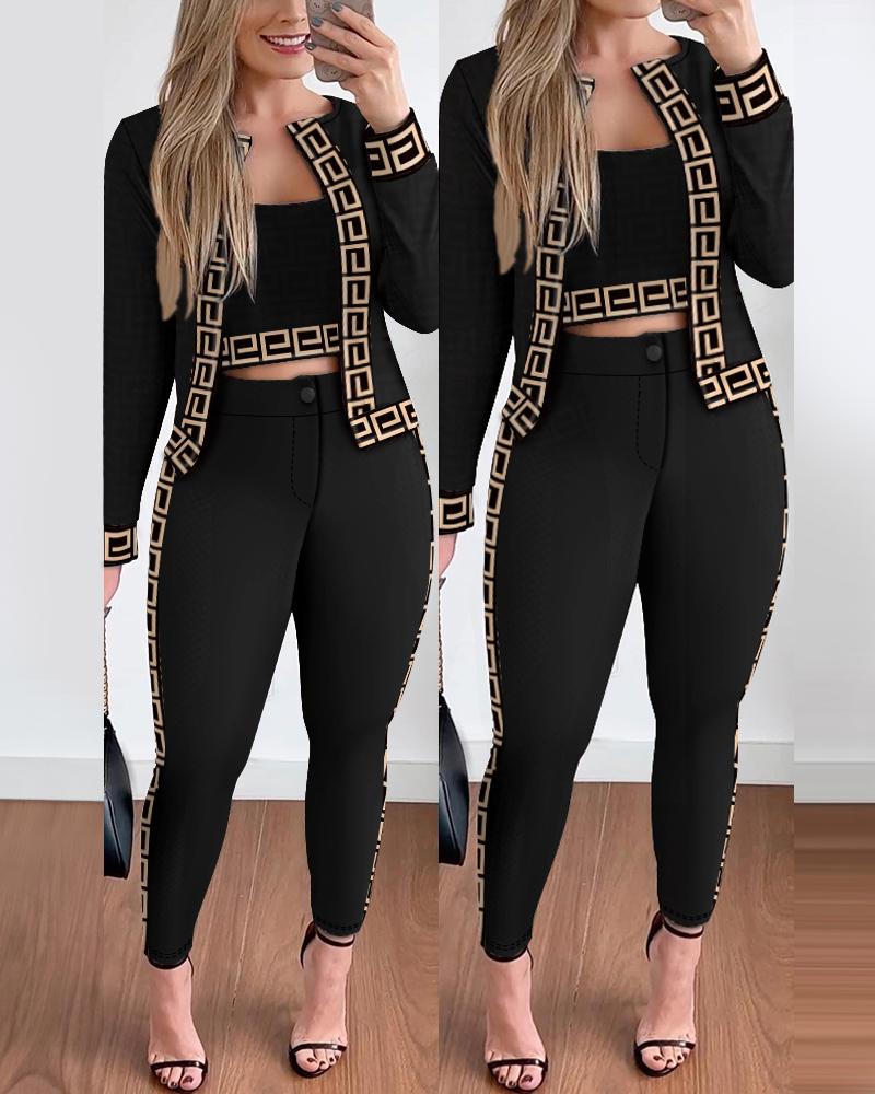 Style:Chic,Elegant Type:Pants Sets Material:95%Polyester,5%Elastane Neckline:Open Front Sleeve Style:Long Sleeve Length:Long Pattern Type:Contrast Paneled,Geometric Decoration:Others Fit Type:Skinny Occasion:Work Package Include:1*Pants Set(With Coat) Fabric Elasticity:Medium Stretch Sheer:No Care Instructions:Machine wash or professional dry clean