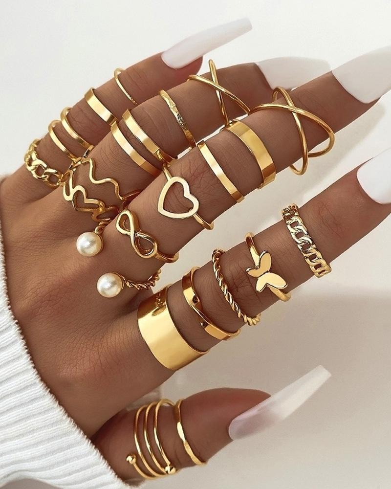Style:Chic Material:Alloy Pattern Type:Geometric,Heart,Butterfly Occasion:Daily Package Include:22PCS Rings Set